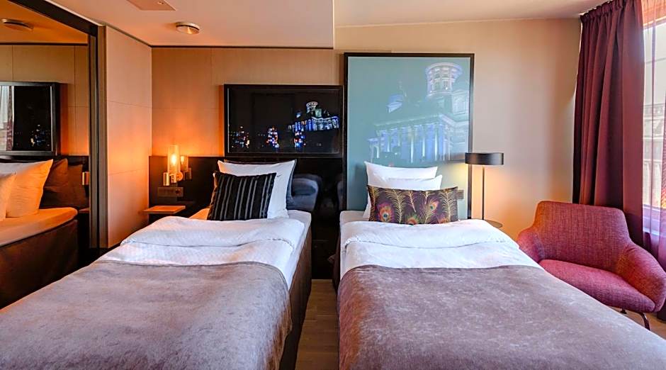 This double room features a flat-screen TV, air conditioning and mini-bar. The rooms are located in our Yrjönkatu building.